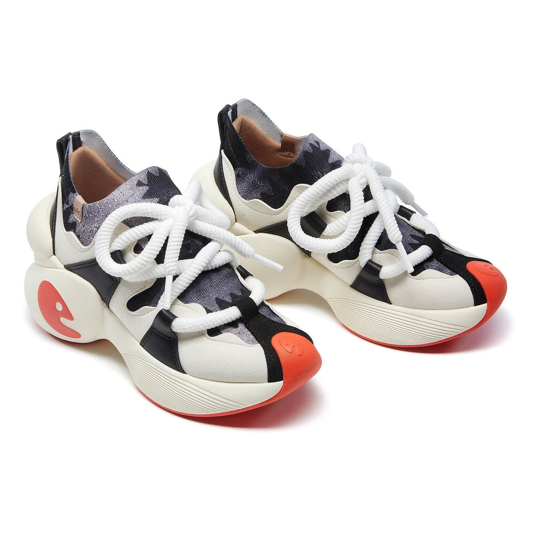 Smooth curves outline the hem. The raised design on the heel is personalized. The overall design brings you a cushioned wearing experience and a vibrant style to your travel.