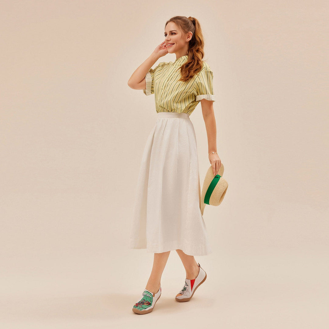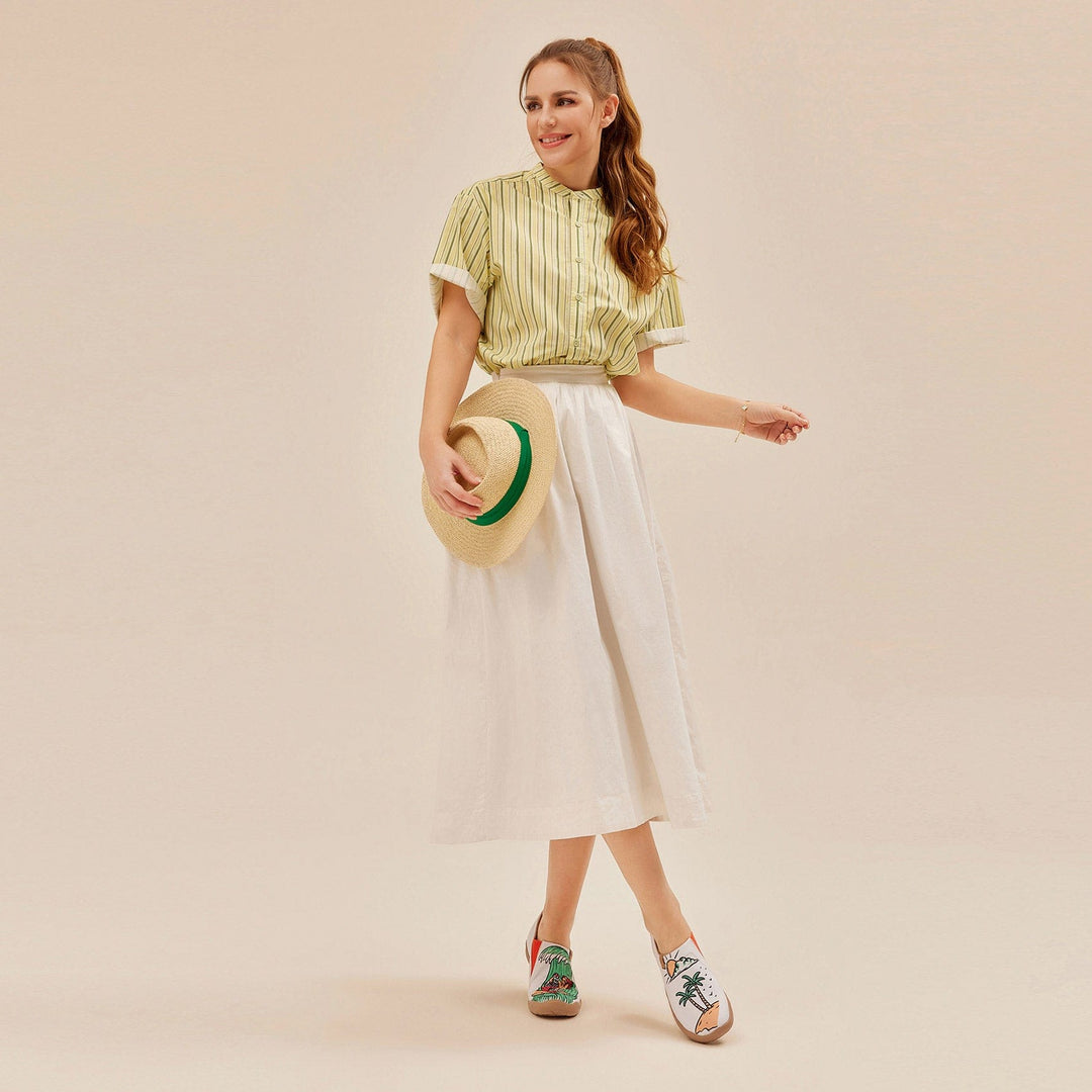 Digital inkjet technology keeps colors vibrant and prevents fading, letting vivid artistic patterns constantly juice up your outfits.