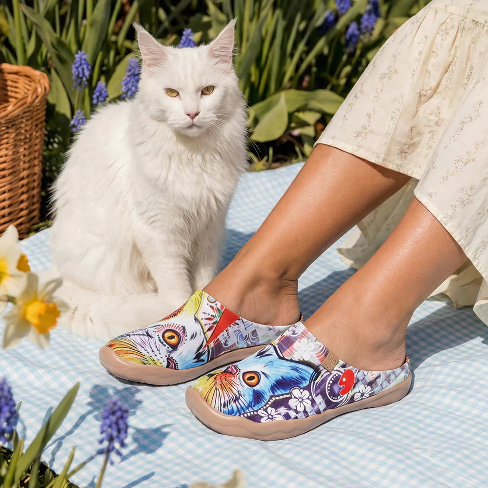 I got the ones with the cat faces when they were on sale. Not sure I ever would have paid full price for what is a pretty basic canvas shoe, but could not resist when they were on sale. I am a size 9 with a slightly wide foot but not wide enough to actually buy my shoes in a wide unless they are made very narrow. These fit me fine in a 9 regular. The sole is non-slip but the shoe itself does not offer much support. I would not wear these if I had a lot of walking to do, but they are perfect for short excursions or around the house. It;s still sandal weather here so have not worn them enough to know how they will hold up. Fall is right around the corner though and they will soon get more wear as fall is perfect for them.