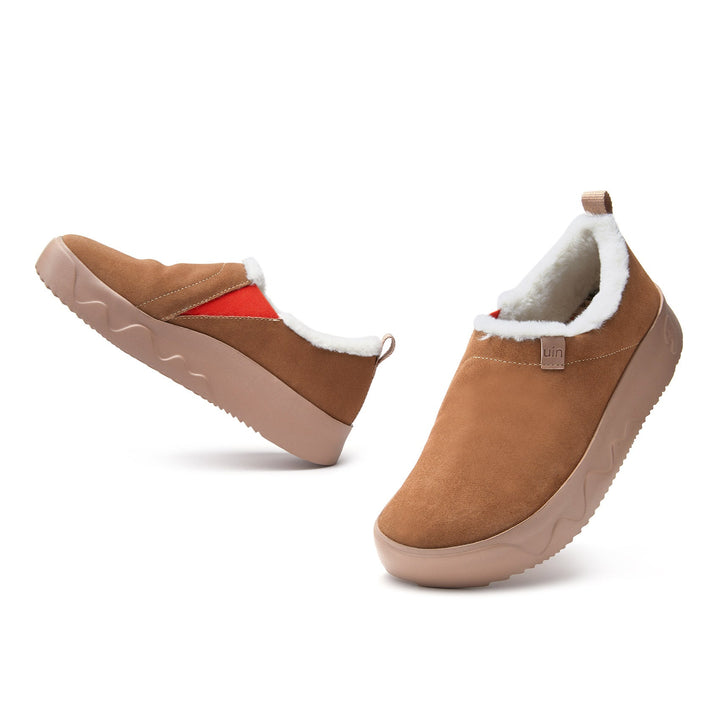 The cow suede fabric has a great texture, creating an elegant appearance of the shoe body. Moreover, its good air permeability ventilates your feet while walking. The fabric is resistant to wear and tear. Plus, it'll keep you cozy in colder climates.