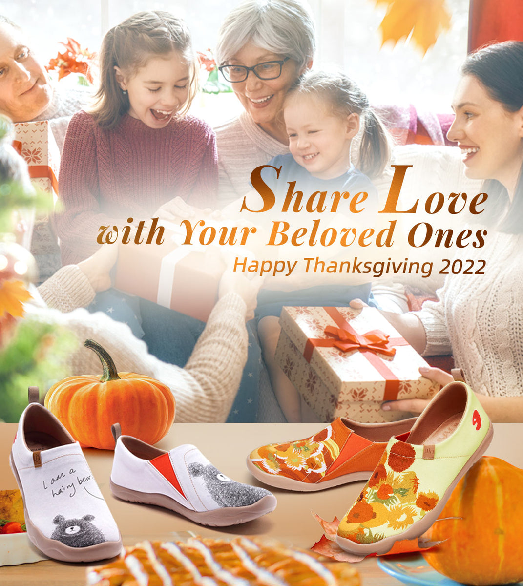 Thanksgiving is a time of year to gather with loved ones and enjoy a lovely meal together. It’s also a time to reflect on the things you’re most grateful for and convey gratitude. Thus, please seize the opportunity to appreciate what you have and cherish precious moments with those you love most. For example, prepare for your beloved ones a pair of footwear that contains sufficient warm, cushioning&soft performance, a trendy appearance, and of course, your gratitude and love also are involved.
