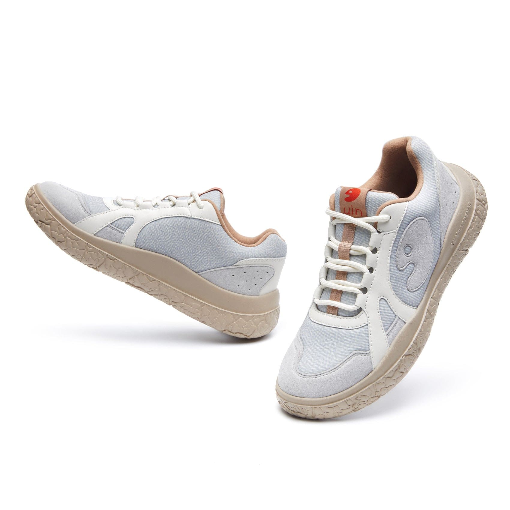 Mesh texture provides excellent breathability for feet.  Microfiber suede is soft and more durable with a superior feel. The enlarged uin logo on the side of the shoe adds vitality to your on-the-go outfits while underscoring the brand's pursuit of youthful & casual style.