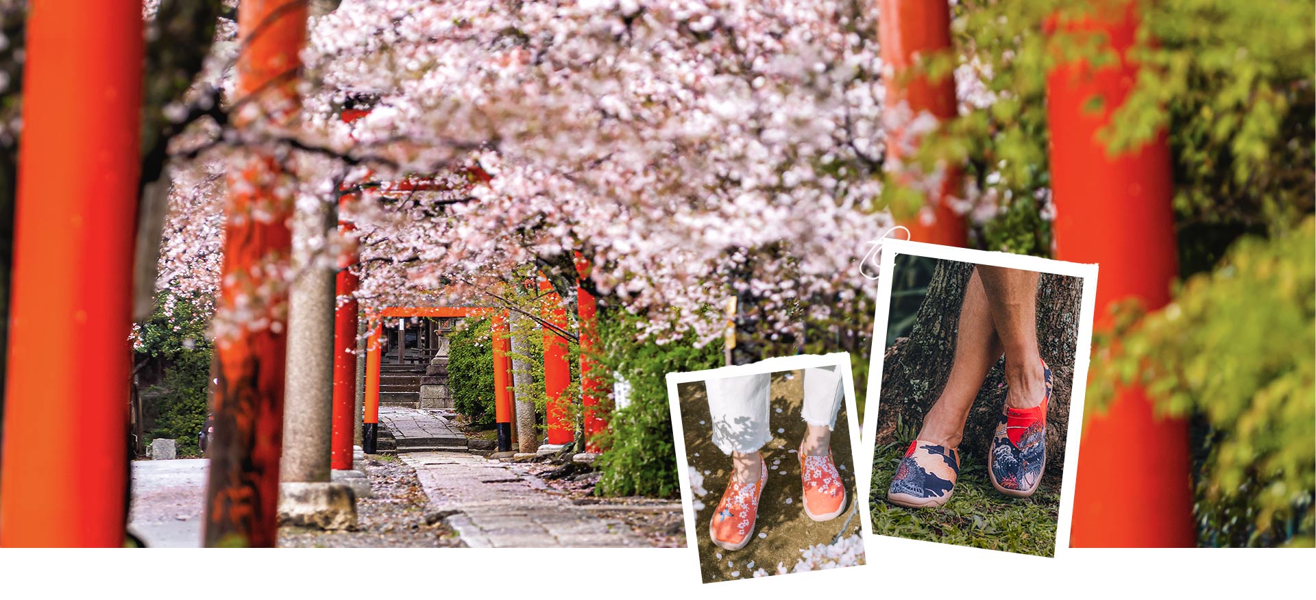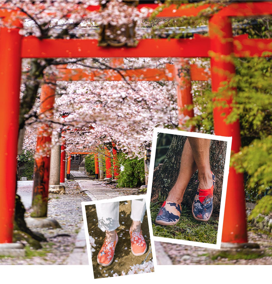 The solemn and mysterious torii represents a yearning and exploration. Wear a pair of uin and stroll through the torii gates with the cherry blossoms to have a romantic conversation with your heart.