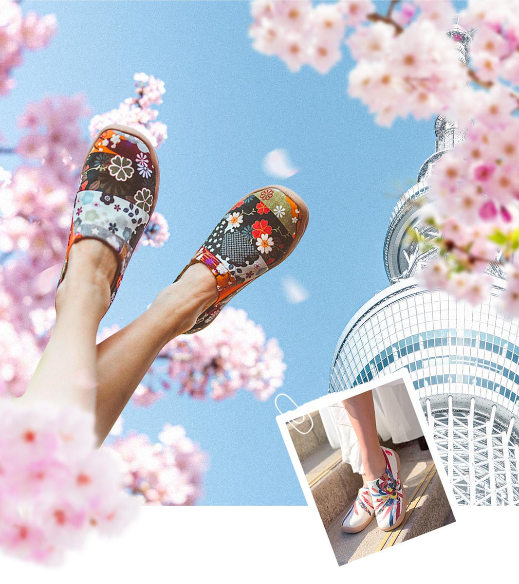 The Spring in Japan seems like a thriving and hopeful one. The famous cherry blossoms are arriving in Tokyo. Are you ready for chasing the cherry blossoms trail with your family? Wear a pair of uin shoes; walk into the cherry blossoms; walk into the scenery; blend in the Spring.