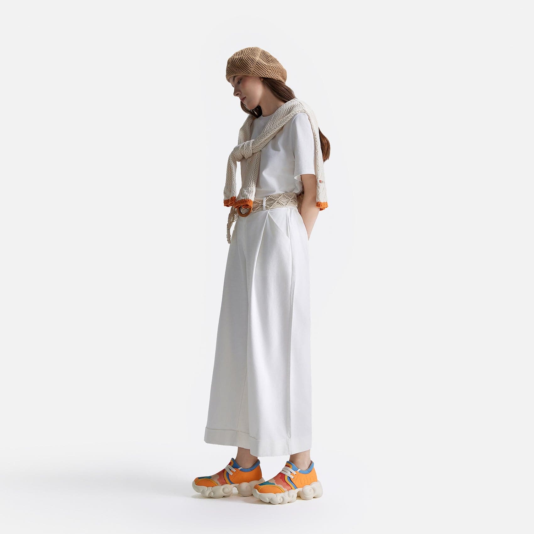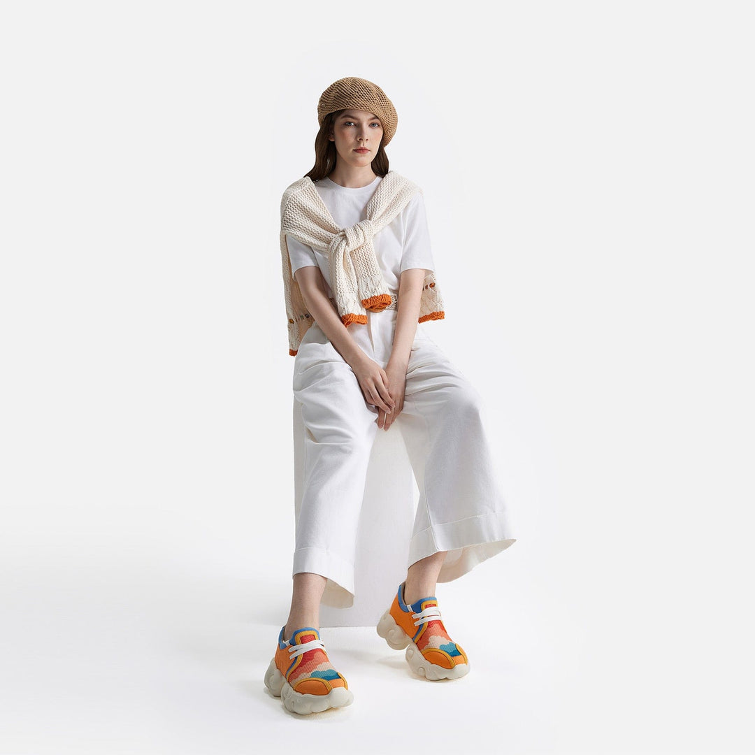 The cloud-shaped sidewall is a visual highlight of the shoe, while the EVA material is lightweight, soft, and flexible, making it comfortable to wear. The overall design has a trendy feel while making travel more casual and light.